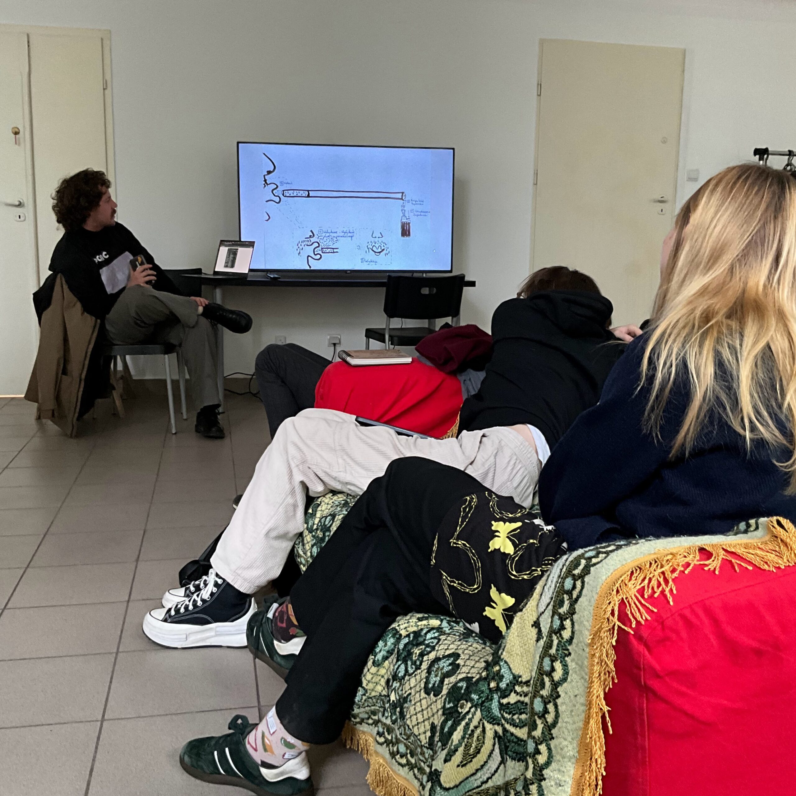 w którym osoby studenckie zamieniają się w nauczycielskie. Przygotowują krótkie prezentacje ekranowe, o wybranej (często nie-artystycznej) metodzie rysunku.