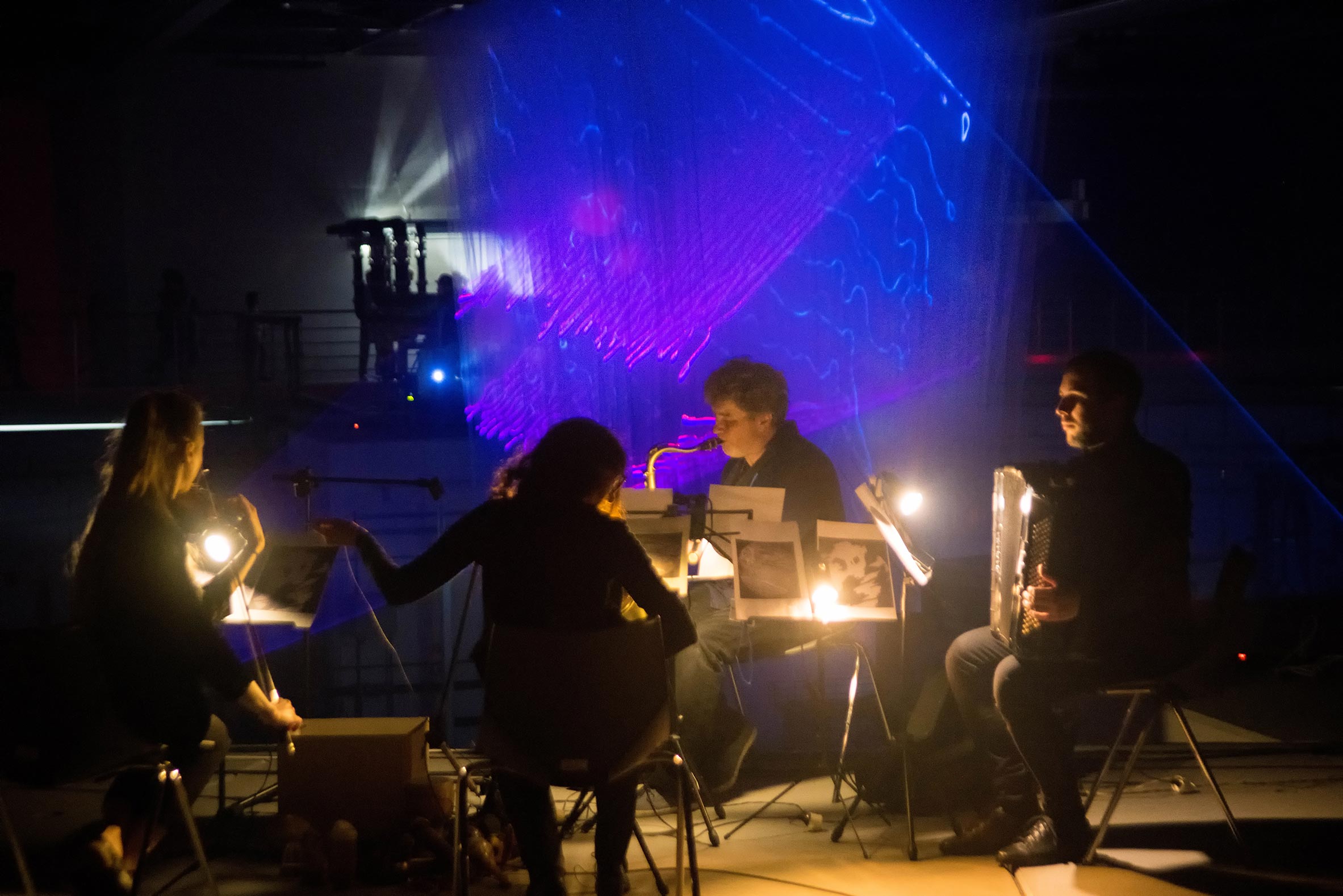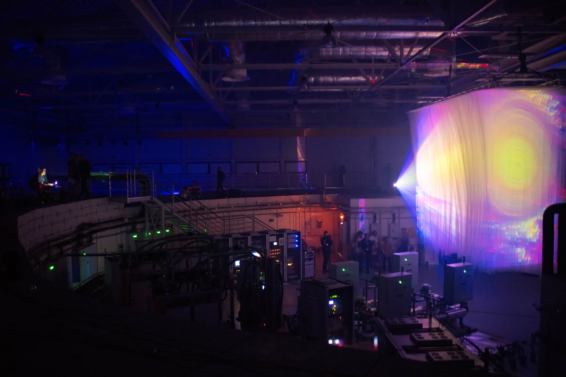 Dynamiczna instalacja stanowiła otwarte, trzygodzinne widowisko łączące światło, dźwięk, ruch i działania na pograniczu realis i rzeczywistości wirtualnej. Dzięki specjalnej aranżacji wizualnej hali zobaczyć można było urządzenia i aparaturę badawczą z zupełnie nowej perspektywy. Lasery i projekcje multimedialne wyświetlane na ścianach synchrotronu oraz konstrukcji złożonej z 20 warstwowych ekranów wizualizowało bogactwo zjawisk fizycznych i optycznych. „Inny świat” kreowały także cyfrowe narzędzia interaktywne, opierające się na działaniu rozszerzonej rzeczywistości (augmented reality). Zakres widzenia poszerzony został również przez obrazy holograficzne, generowane przez udostępniane w ramach wydarzenia okulary holograficzne – Hololensy. Instalacja obejmowała działania z obszaru muzyki elektroakustycznej. Zesół zaproszonych do projektu muzyków zrealizował koncert składający się z rotacyjnych kompozycji topofonicznych na bazie partytur graficznych. Na koniec wystąpił gość specjalny, kanadyjski muzyk, kompozytor i performer Gordon Monahan z wykonaniem utworu na trzy wirujące głośniki pt.„Speaker Swinging”.
